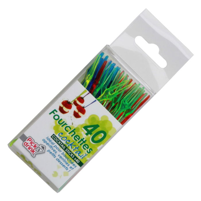 Pick and Drink Juego De 40 Mini Tenedor Aperitivo Reutilizable Colores Surtidos 9 cm