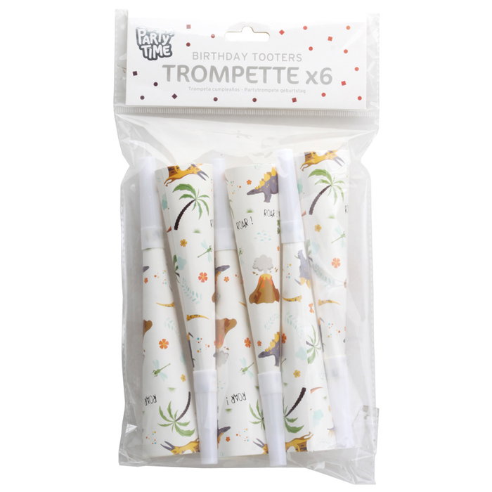 - Anima las fiestas con estas trompetas con el popular diseño de dinosaurio.