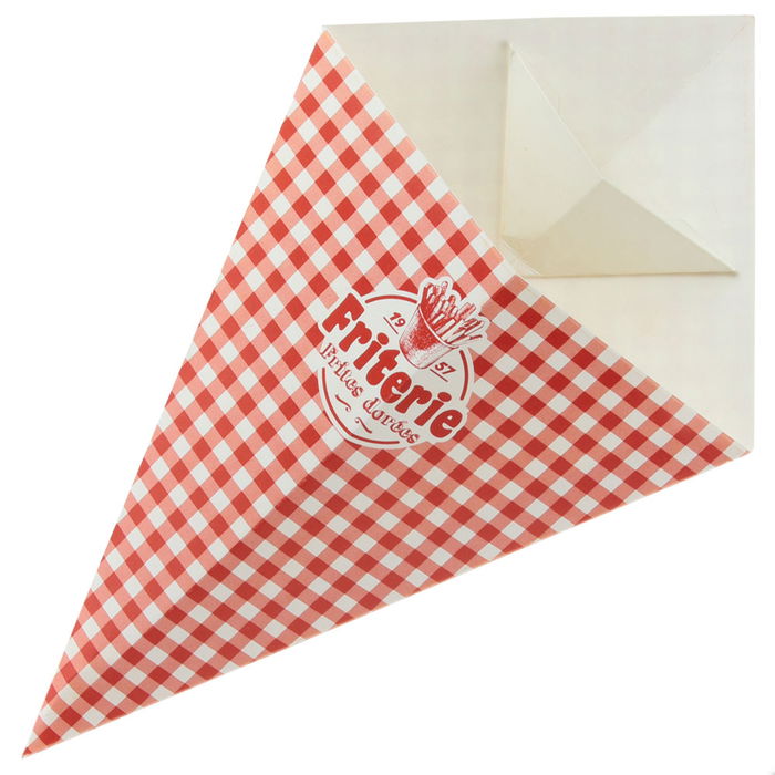 - Práctico y muy útil: el cono tiene un mini cono en su interior para las salsas (ketchup, mostaza), de manera que con una mano se sujeta y con la otra se pueden mojar las patatas y comerlas cómodamente