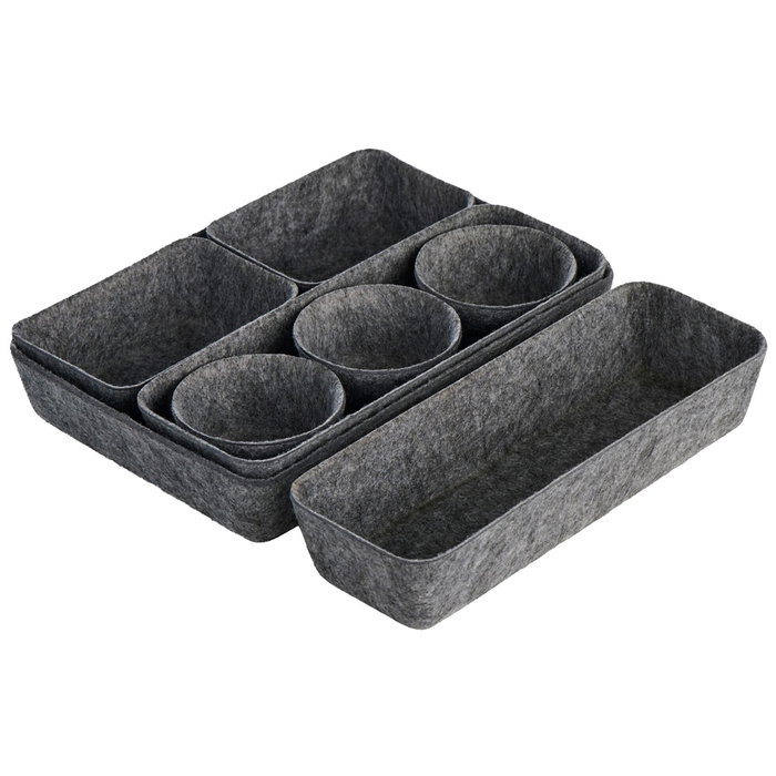 - Juego de 8 piezas de fieltro color gris oscuro.