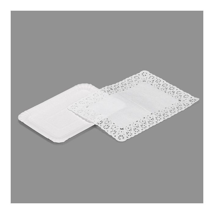 Best Products Bandeja rectangular con blonda color blanco 14 x 21 cm, 4 uds
