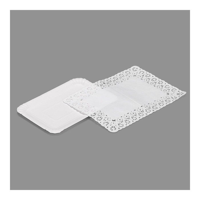 Bandeja rectangular con blonda color blanco 14 x 21 cm, 4 uds