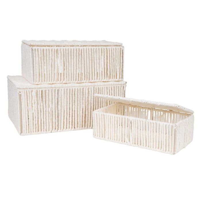 Juego de Cajas Decorativas Romimex Blanco Cuerda 35 x 16 x 24 cm 3 Piezas