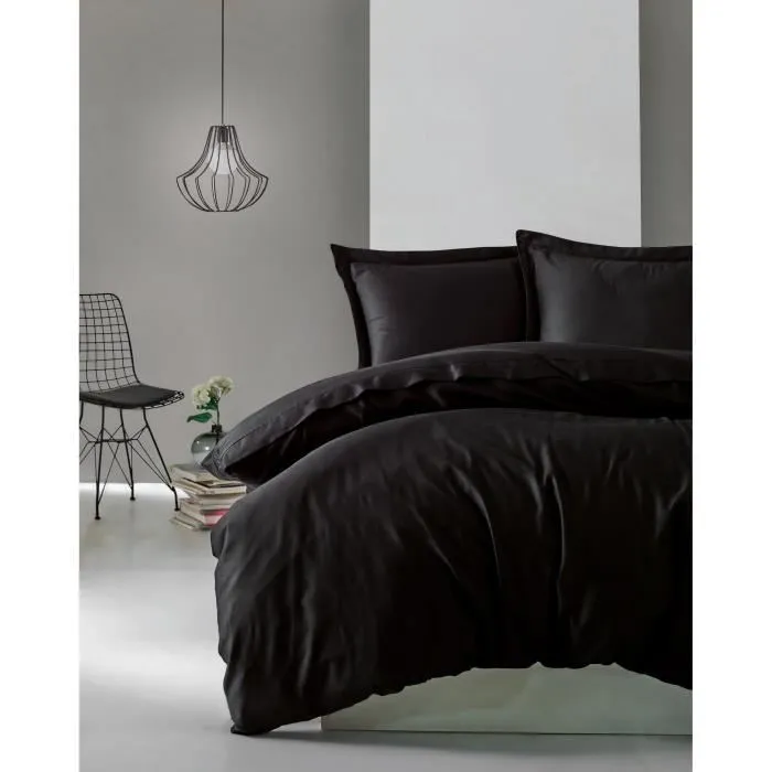 Juego de Cama 220x240 cm + 2 Fundas Almohada 60x60 cm - 100% Algodón Satén Negro - MEN8681875218435