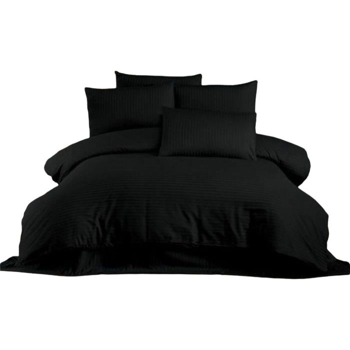 Juego de Cama 220x240 cm con 2 Fundas de Almohada 60x60 cm 70% Poliéster 30% Algodón Negro ASI8683743939176