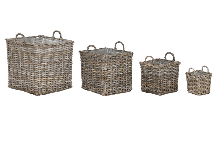 DKD Home Decor Cesta Set de 4 Indonesia 1c24 Mimbre Gris Claro 50 x 50 x 58 cm con Asa