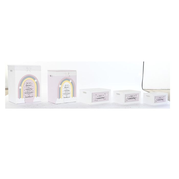 DKD Home Decor Cesta Ropa Kids Blanco Rosa 30 x 55 x 40 cm Set 5