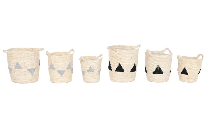 DKD Home Decor Cesta Boho Set de 3 (2 Unidades) Negro Gris Natural 33 x 40 x 33 cm