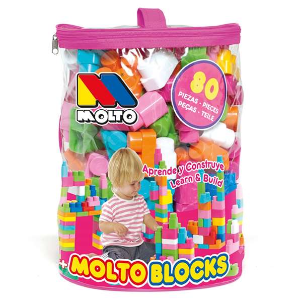 Molto Bolsa Construccion Rosa con 80 Piezas