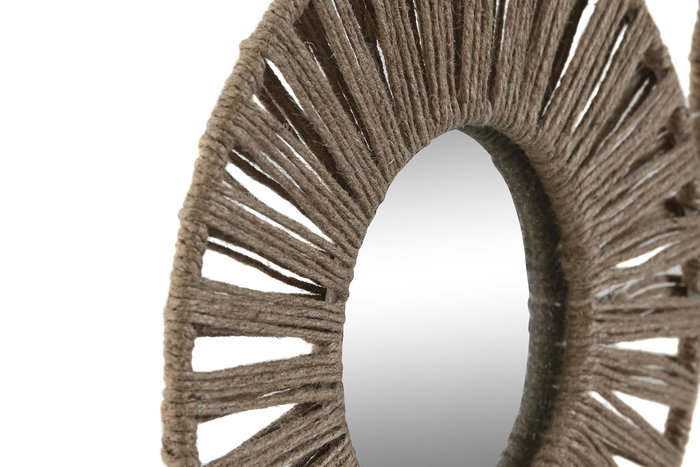 DKD Home Decor Espejo Redondo Tropical Yute Cristal Natural Set de 3 Piezas 1x20x20 cm
