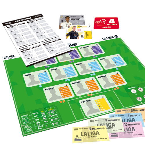Con LALIGA, El juego, te conviertes en mánager del mejor equipo del mundo. ¡Compra y vende jugadores! ¡Crea tu propio equipo con los mejores jugadores del mundo! ¡Gana LALIGA! El juego para los apasionados del fútbol. Nuevo tablero con mercado de fichajes y casillas actualizadas. 6 sistemas de Juego clásicos del fútbol. Nuevas cartas de acción adaptadas al fútbol moderno. Cartas de futbolistas rediseñados con habilidades especiales, cartas gold y silver...