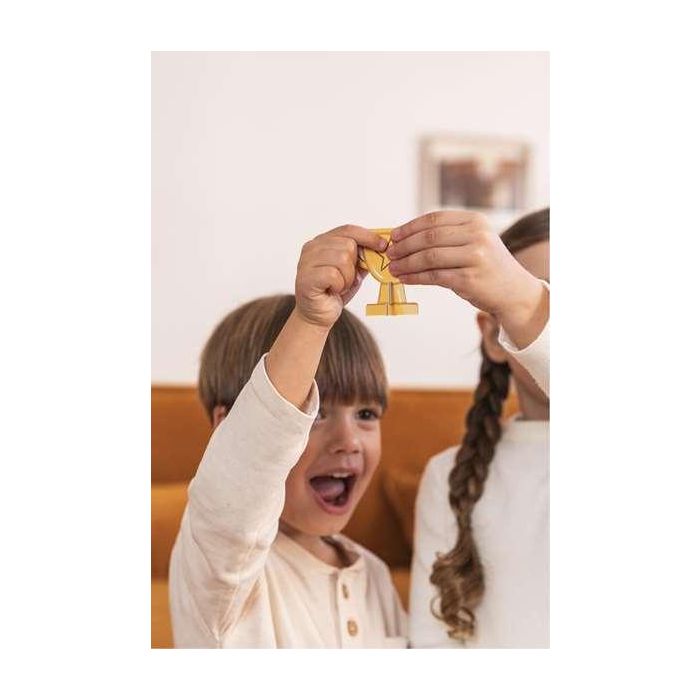 - Contenido caja: 4 coches de madera de diferentes colores 1 dado numérico y 1 dado de colores Tablero-puzzle Taller mecánico 3D 1 arco de madera y una copa para el coche ganador