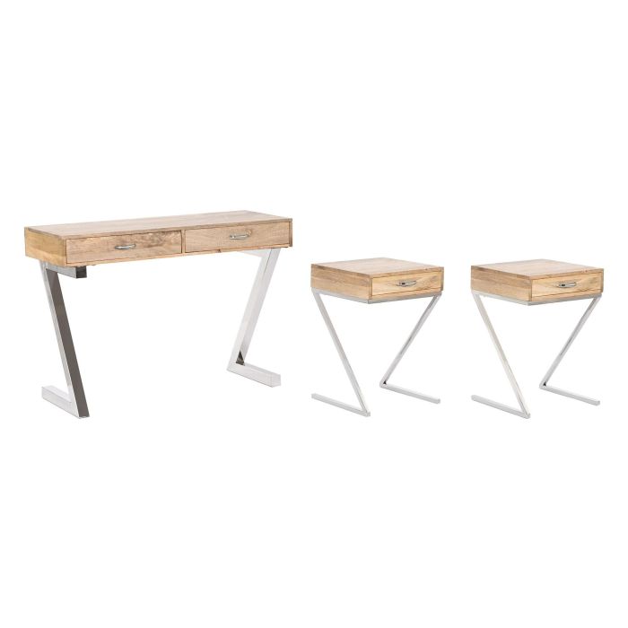 DKD Home Decor Consola Loft Set de 3 Marron Claro Plateado 76 x 110 x 41.5 cm