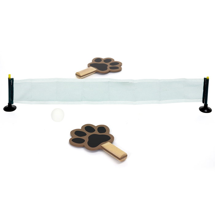- El set incluye: _ 2 palas con dibujos de pata de perro.