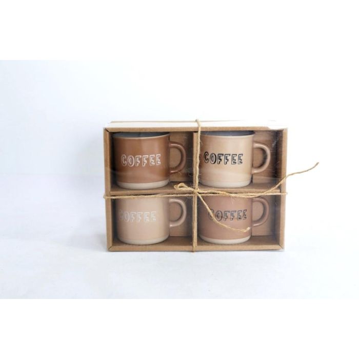 DKD Home Decor Tazas de Gres Marrón Capacidad 180ml Set de 4 Piezas 6 x 7 x 7.6 cm
