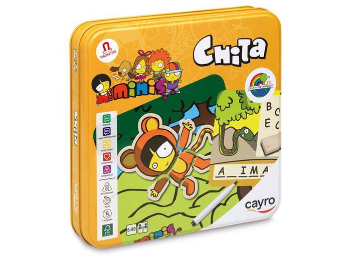 Juego Ahorcado Chita de madera en caja de metal. 8 piezas, 2 jugadores. 19x19x3,5cm