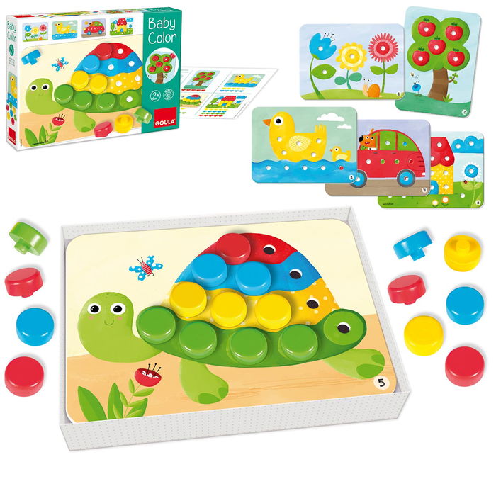 Goula Baby Color 53140 Juego Educativo para Aprender Colores con 20 Pivotes de Madera y 6 Láminas Progresivas +2 Años