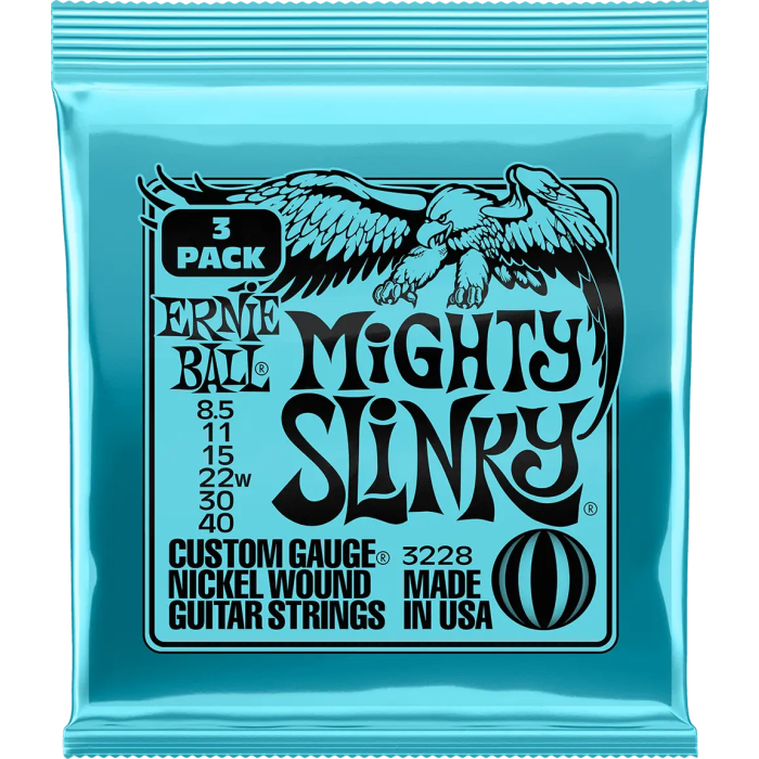 Las Mighty Slinkys se sitúan entre las conocidas Super Slinky y las Extra Slinky. Es un juego ideal para los músicos que buscan un tacto extremadamente suave. Calibres: .0085, .011, .015, .022w, .030, .040