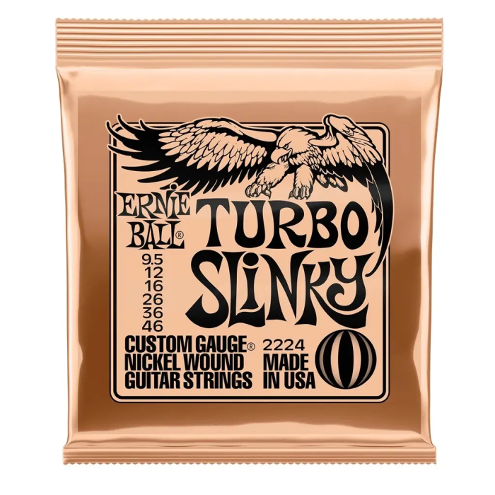 Las nuevas Turbo Slinkys nacen para colocarse perfectamente entre las populares Slinky Regular y Slinky Hibryd. Jugando con ambos sets conseguimos una combinación de calibres de cuerdas existentes con otros de nueva cuña consiguiendo nuevos equilibrios y sensaciones para el guitarrista. Sencillamente estamos ajustando al máximo los juegos para cubrir todas las necesidades de ellos. Las nuevas Turbo son perfectas para los guitarristas que buscan una mayor comodidad de tacto pero con diferencias mínimas en su tono y su tensión. Calibres: 9.5, 12, 16, 26, 36, 46