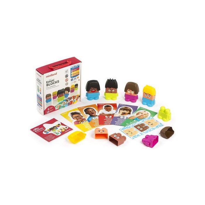 Miniland Juego Emotiblocks 32350 - Figuras para Aprender Emociones con 6 Personajes Intercambiables y Actividades