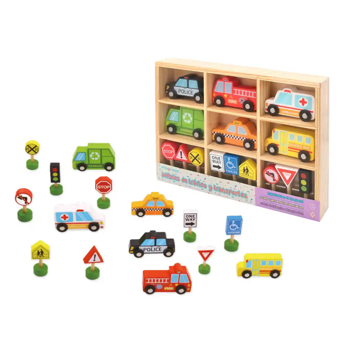 Imaginovo Juego Infantil de Madera Vehículos y Señales de Tráfico +3 Años 16 Piezas 30x22x4cm