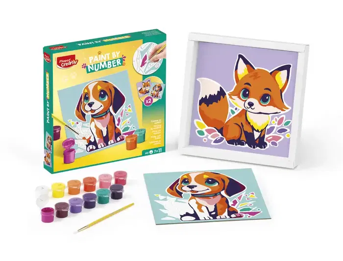 Maped Kit Pinta por Números Perro/Zorro para Niños con Acuarela, 12 Colores y Pincel