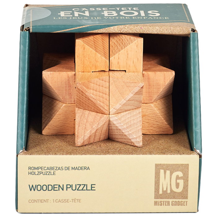 Mister Gadget Juego Puzzle De Madera Vintage Cubo Esfera Pirámide 3D Ejercita Tu Cerebro 8x8x8cm