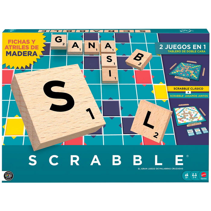 Vive la diversión más allá de las palabras con el juego de mesa Scrabble, que ofrece dos formas de jugar con fichas de letras y atriles de madera de primera calidad. Los jugadores pueden disfrutar del Scrabble, el juego clásico de palabras cruzadas que ya conocen y tanto les gusta (con el que formarán palabras y buscarán puntuaciones de Doble tanto de letra y Triple tanto de palabra), o pueden darle la vuelta al tablero y probar Scrabble Together, un juego rápido e informal en el que los jugadores cooperan para completar desafíos de palabras. Estos dos juegos deletrean la DIVERSIÓN tanto para los jugadores veteranos como para los nuevos.