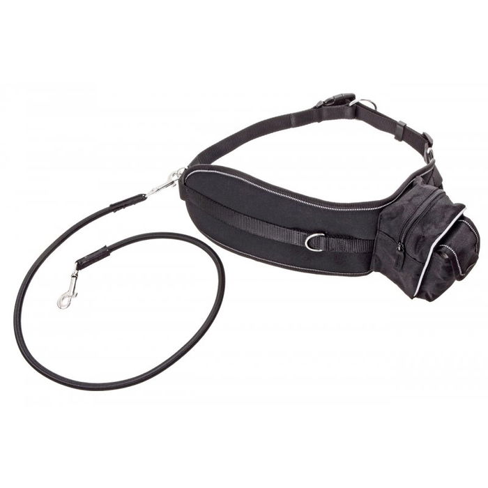 Karlie Cinturón Doggy-Jogger Correr Negro Riñonera Ajustable Correa Elástica 3 Anillas