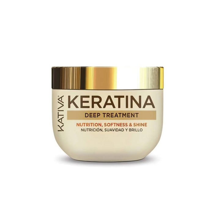 Mascarilla con keratina - Mascarilla antiencrespamientoKERATINA tratamiento intensivo nutrition, Mascarilla con keratina - Mascarilla antiencrespamientoDescubre el poder revitalizante del KERATINA tratamiento intensivo nutrition de Kativa. Este innovador tratamiento está diseñado para prevenir y reparar el cabello desde su interior, gracias a su exclusiva fórmula que combina keratina y ceramidas. Estas propiedades actúan reconstituyendo las fibras capilares, logrando revivir la vitalidad de tu melena para que luzca más saludable y radiante.