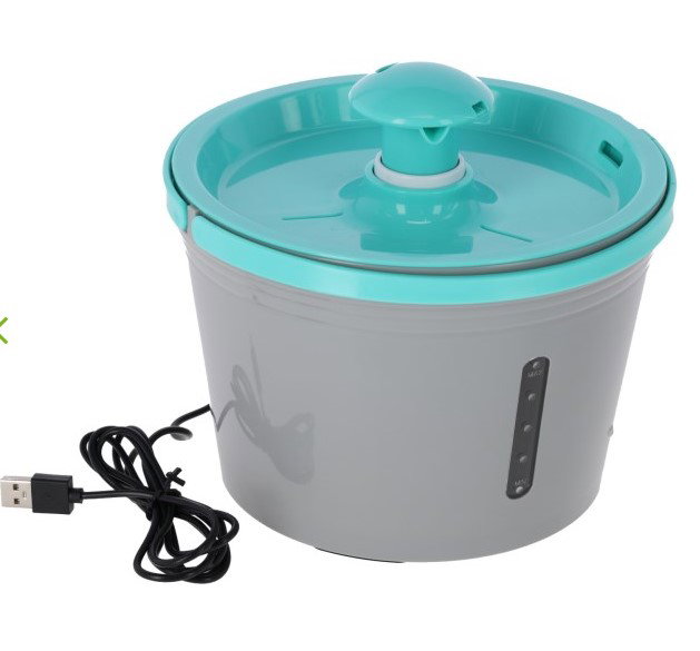 Kerbl Fuente de Agua Turquesa/Gris 1.6L, Bomba Silenciosa, USB, Filtro de Carbón, 2 Velocidades
