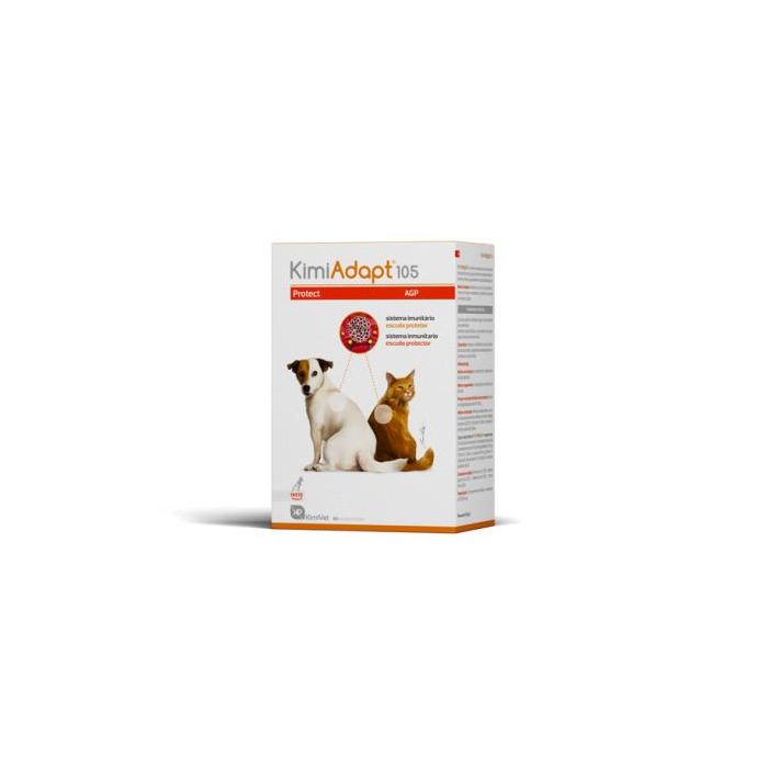 - Indicaciones: KimiAdapt ® contiene antioxidantes, por esta razón se recomienda para ayudar a reforzar la respuesta del sistema inmunitario y para promover la salud cardiovascular. Modo de empleo: Administrar una vez al día (directamente en la boca o mezclado con la dieta) de acuerdo con el peso corporal: 1 comprimido cada 10 kg