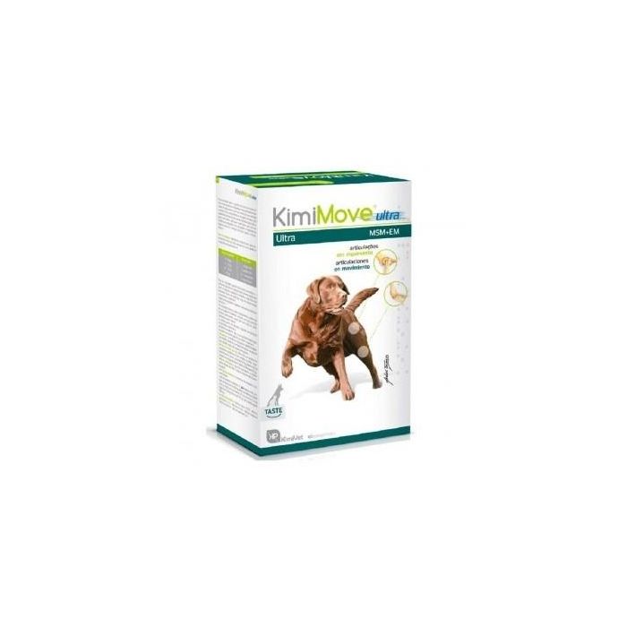 - Indicaciones: KimiMove® Ultra se recomienda como apoyo nutricional en el caso de las articulaciones sanas y flexibles en tiempos de rápido crecimiento de los perros jóvenes y para los animales con una alta actividad física acompañada de desgaste de las articulaciones. Igualmente está indicado como apoyo nutricional para perros y gatos con lesiones traumáticas de las articulaciones, con o sin la inmovilización temporal de las articulaciones y los procesos degenerativos en el cartílago articular (como la osteoartritis). Modo de empleo: Administrar una vez al día (directamente en la boca o mezclado con la dieta) de acuerdo con el peso corporal: 5 - 15 kg ½ comprimido 15- 30 Kg 1 comprimido 30 - 45 Kg 1 + ½ comprimidos > 45 Kg 2 comprimidos Administre durante 60 dias, o por períodos más largos, según prescrición del veterinario.