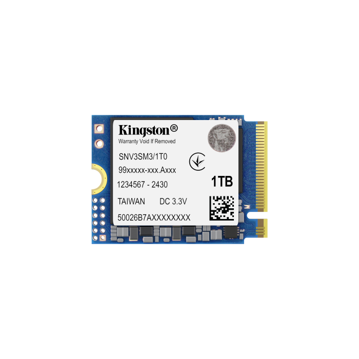 Las SSD Kingston’s NV3 PCIe 4.0 NVMe son soluciones de almacenamiento de nueva generación con un controlador NVMe Gen 4x4, con velocidades de lectura/escritura de hasta 6.000/5.000MB/s*. Disponible en tamaños compactos y de una sola cara M.2 2280 (22 × 80 mm) y 2230 (22 × 30 mm) para un mayor almacenamiento en sistemas pequeños como portátiles y consolas de juegos de mano*****. Menor consumo de energía y emisión de calor para optimizar el rendimiento del sistema sin comprometer el valor. Capacidades de entre 500GB y 4TB** para ofrecer el espacio que necesitas para aplicaciones, juegos, etc.