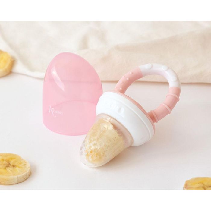 KioKids Alimentador Antiahogo Rosa Petits Moments - Alimentador de Malla de Silicona para Bebé +6 Meses, para Fruta y Comida, Fácil de Agarrar y Lavar en Lavavajillas