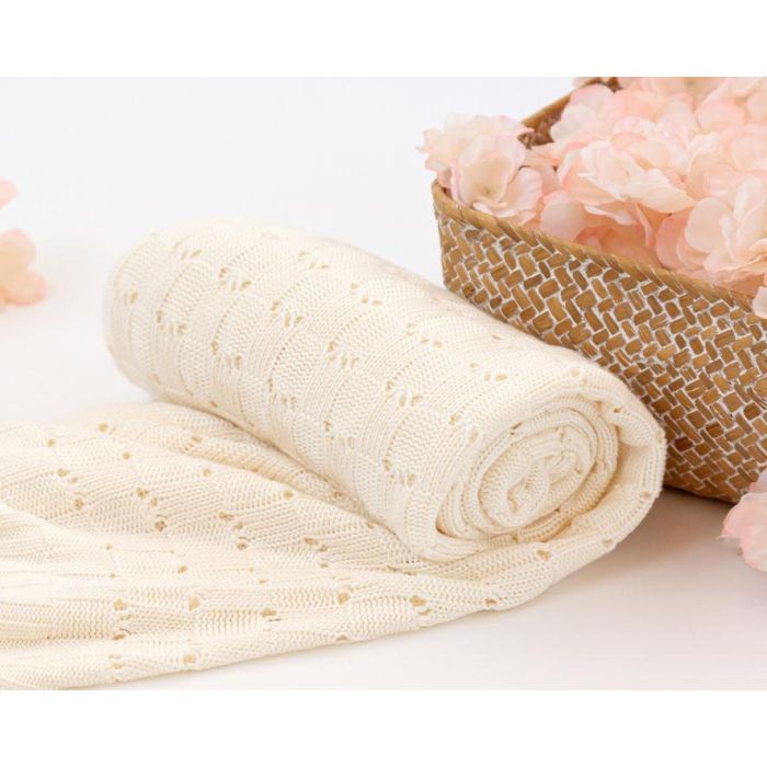 KioKids - Manta de Bebé de Bambú 100% Natural, Térmica y Suave, Certificado Oeko-Tex, Ecológica, Tamaño 80x110 cm, Ideal para Recién Nacido (+0 Meses), Color Blanco Crudo