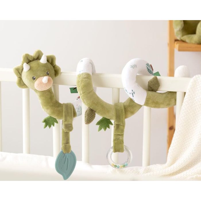 KioKids - Peluche Juguete Espiral Dinosaurio Verde para Bebé +0 Meses, para Cuna, Silla de Paseo y Colección, Material Polyester, Lavable 30°