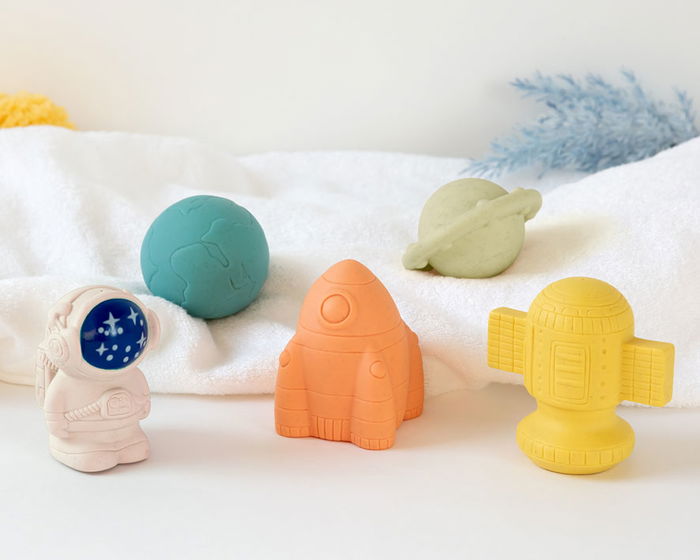 La hora del baño será aún más divertida con este set de 5 juguetes espaciales antimoho. fabricados en un 30% de trigo, estos juguetes de baño son más ecológicos. cada juguete tiene un diseño colorido y amigable, lo que atrae la atención de tu bebé mientras lo ayuda a desarrollar sus habilidades motrices al aprender a agarrarlos y jugar con ellos. además, gracias a su material de alta calidad, estos juguetes son fáciles de limpiar y no retienen agua, evitando la proliferación de bacterias. - recomendado para +4 meses - material: 70% pvc, 30% trigo - tamaño de cada juguete: aproximadamente 6 cm - incluye 5 juguetes espaciales de diferentes colores - antimoho y fácil de mantener limpio