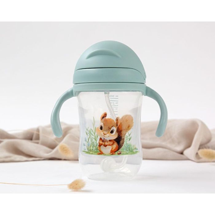 KioKids Taza Aprendizaje Ardilla Step 3 Pajita 300 mL Color Salvia +6 Meses