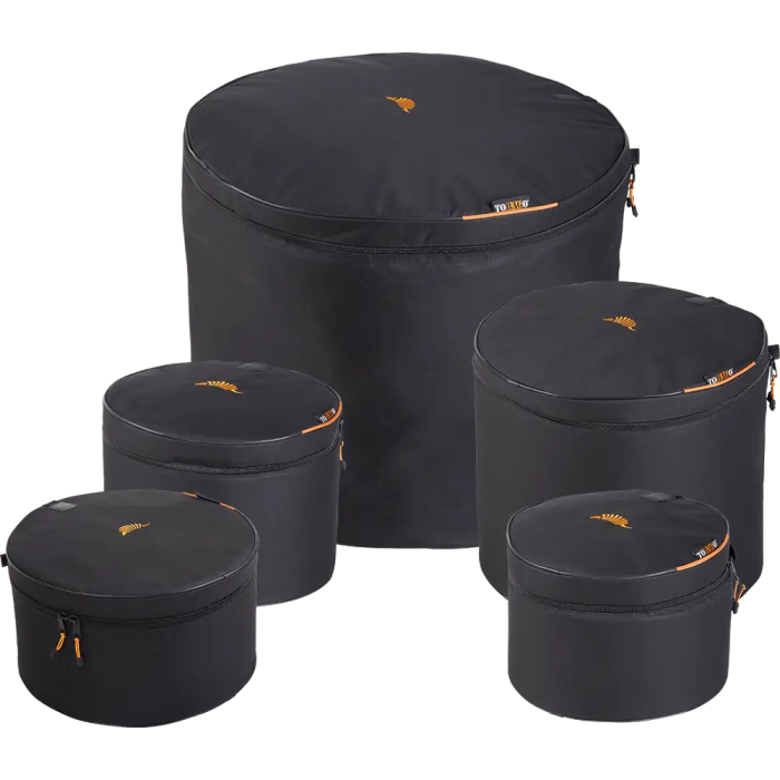 - Categoría: Funda- Color: Negro- Destino: Batería- Material exterior: Poliéster de 600 deniers de alta calidad- Material interior: Nylon 300DContenido del kit APNT22- Bombo: 22» x 18- Tom 1: 10» x 8- Tom 2: 12» x 9- Tom: 16» x 16- Caja: 14» x 6,5 - Material de protección exterior: Fabricada en poliéster 600D impermeable con revestimiento de PVC, la funda exterior ofrece una protección fiable contra los elementos, manteniendo la batería a salvo de la lluvia, la humedad y otros factores externos.- Acolchado de polietileno de alta densidad de 15 mm: el robusto acolchado de polietileno de alta densidad de 15 mm de grosor proporciona una protección superior, absorbiendo los golpes con elasticidad y protegiendo eficazmente la batería de posibles daños causados por caídas o impactos.- Forro interior de nailon 300D: el forro interior de nailon 300D añade una capa adicional de protección y garantiza que la batería esté protegida de arañazos y abrasiones.- Asa ergonómica: cada bolsa está provista de un asa resistente y ergonómica de plástico blando, para un transporte cómodo y seguro.- Cierre rápido y seguro: La cremallera de 10 mm de ancho con cursor elástico naranja garantiza un cierre rápido y seguro, permitiendo un fácil acceso a la batería y asegurando que la funda permanezca cerrada durante el transporte.Las fundas para batería Tobago combinan características avanzadas y materiales de alta calidad para proporcionar una protección completa y óptima para su batería en todas las situaciones. Mantenga su instrumento seguro y listo para tocar con estilo con Tobago.