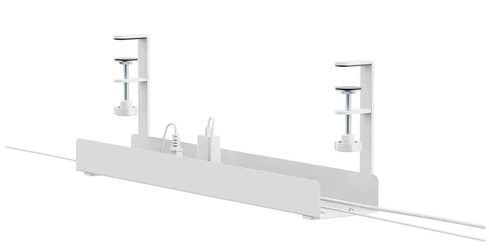 Neomounts ADS07-121WH Organizador de Cables para Escritorio, Bandeja de Cables en Blanco con Montaje por Abrazadera Universal