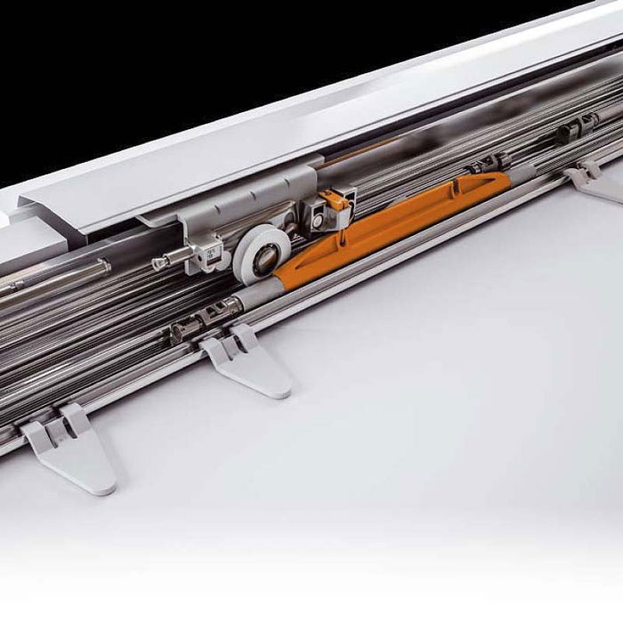 Guía inferior insertada en la base del mueble, largo máximo 6200mm