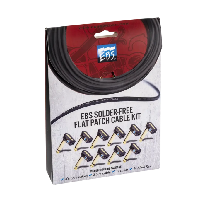 "Como líder del mercado en accesorios para pedaleras, EBS vuelve a innovar con un producto diseñado para facilitar la instalación de pedaleras garantizando una óptima transmisión del sonido". Personaliza tu pedalboard:Este kit ofrece la máxima personalización de tu pedalera gracias a su cable plano, flexible, y fácilmente ajustable a la longitud deseada. Los conectores jack son de alta calidad y están disponibles en kits de 6 o 10 unidades y con cables de 1,5 m o 2,5 m de longitud, lo que te permite una instalación adaptada y personalizada a tus necesidades específicas.Fácil instalación.La instalación es rápida y segura gracias a un exclusivo sistema de fijación compuesto por tornillos especialmente diseñados y de fijación Allen. Todo ello garantiza un rendimiento sonoro óptimo, con una conexión sin soldaduras garantizada para ofrecerte una señal clara, definida y real"