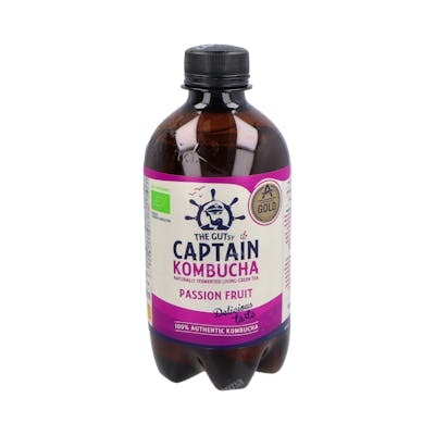 Composicion: Kombucha ecológica (agua filtrada, azúcar de caña ecológica, té verde bio 0,4%, hojas de stevia ecológicas, cultivos de kombucha), “Bacillus coagulans”,aroma natural de maracuyá 0,29% Valor nutricional por 100 g: VALOR ENERGÉTICO 74 KJ / 18 Kcal GRASAS 0 g DE LAS CUALES SATURADAS 0 g HIDRATOS DE CARBONO 4,4 g DE LOS CUALES AZÚCARES 4,4 g PROTEÍNAS 0 g SAL 0 g