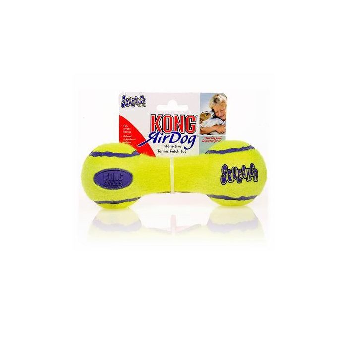 El KONG AirDog® Squeaker Dumbbell combina dos juguetes clásicos para perros que lo hacen perfecto para el juego de buscar y recoger: la pelota de tenis y el chirriador. Este material no abrasivo y de alta calidad no desgastará los dientes de su perro. Encuentre el AirDog® con la forma favorita de su perro y ¡a jugar!