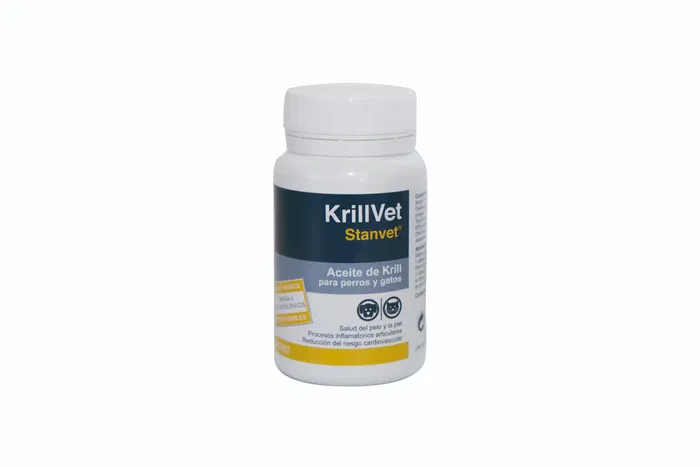 Krill Vet de Stangest es un suplemento alimenticio en formato de cápsulas. Cada envase contiene 60 cápsulas, ideales para un suministro continuo. Este producto está formulado específicamente para el cuidado de mascotas, aprovechando los beneficios del krill, una fuente rica en ácidos grasos omega-3, antioxidantes y otros nutrientes esenciales. Krill Vet contribuye al mantenimiento de la salud articular, la función cognitiva y el brillo del pelaje de tu animal de compañía. Es un complemento natural y de alta calidad, perfecto para integrar en la rutina diaria de bienestar de tu mascota.