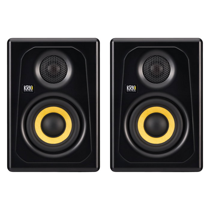 Pareja de monitores activos de referencia de estudio de 2 vías de 3". Los monitores KRK KREATE SERIES ofrecen un valor increíble y el legendario rendimiento de monitorización de estudio KRK a músicos, ingenieros, productores y creadores de contenido. Ofrecen las herramientas necesarias para reproducir cada matiz de su sonido con una claridad y precisión asombrosas. Tipo de sistema: Par de monitores de estudio activos (izquierdo activo derecho pasivo). Graves: Woofer de 3,5" cono compuesto de fibra de vidrio tejida, imán de ferrita. Controlador de alta frecuencia: Tweeter de 3/4, cúpula textil e imán de neodimio. Respuesta en frecuencia (+/- 3 dB): 70 Hz - 33 kHz. Rango de frecuencia de bajas frecuencias (-10 dB): 63 Hz. Frecuencia de cruce: 3,06 kHz. Configuración del amplificador: Clase D. Potencia total: 65W. Potencia dinámica de salida total: 130W. Presión sonora máxima (par): 104 dB. Ángulos de cobertura: 147° horizontal x 70° vertical. Entradas de audio analógicas: TRS balanceado de 1/4", RCA, auxiliar de 1/8". Entrada inalámbrica: Bluetooth® Classic 5.3 A2DP. Relación señal-ruido (SNR) >95,7 dB. Voltaje de entrada CA: 100 240 V CA (+/- 10 %), 50/60 Hz. Tipo de fusible: T4AL/250 V - No reparable por el usuario. Construcción de la caja: MDF recubierto de vinilo PVC. Construcción del deflector: MDF con placa frontal reforzada de poliestireno de alto impacto. Dimensiones: 205 mm x 140 mm x 159 mm. Peso: 4,5 kg.