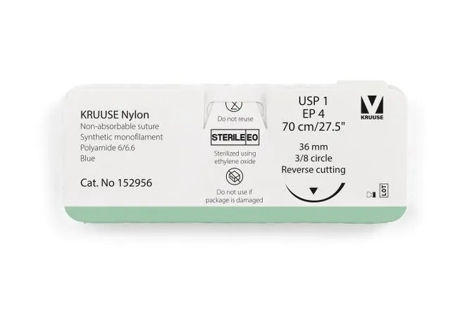 Kruuse Nylon 1, disponible en paquete de 12 unidades. Este modelo en color azul tiene una longitud de 70 centímetros y una anchura de 36 milímetros. Está clasificado para un rango de 3-8 Rc. Producto de la marca Kruuse.
