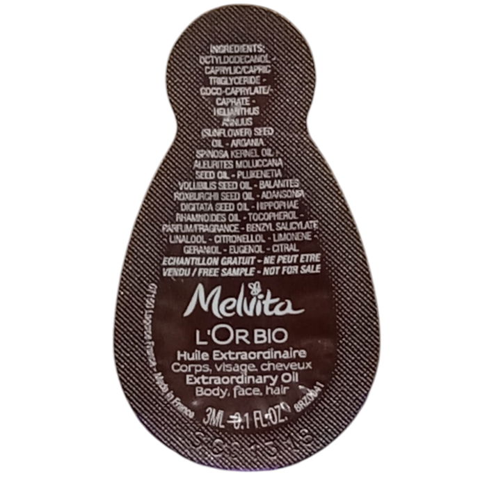 Melvita, L'or Bio, Orgánico, Nutritivo, Aceite corporal, Para cuerpo, cara & cabello, Día & Noche, 3 ml *Muestra