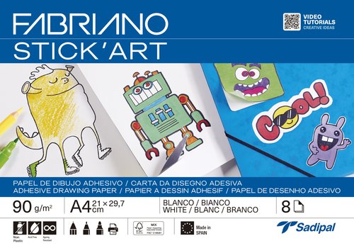 LAMINAS DIBUJO FABRIANO ADHESIVAS STICK ART A4 90g BLANCO PAQUETE de 8
